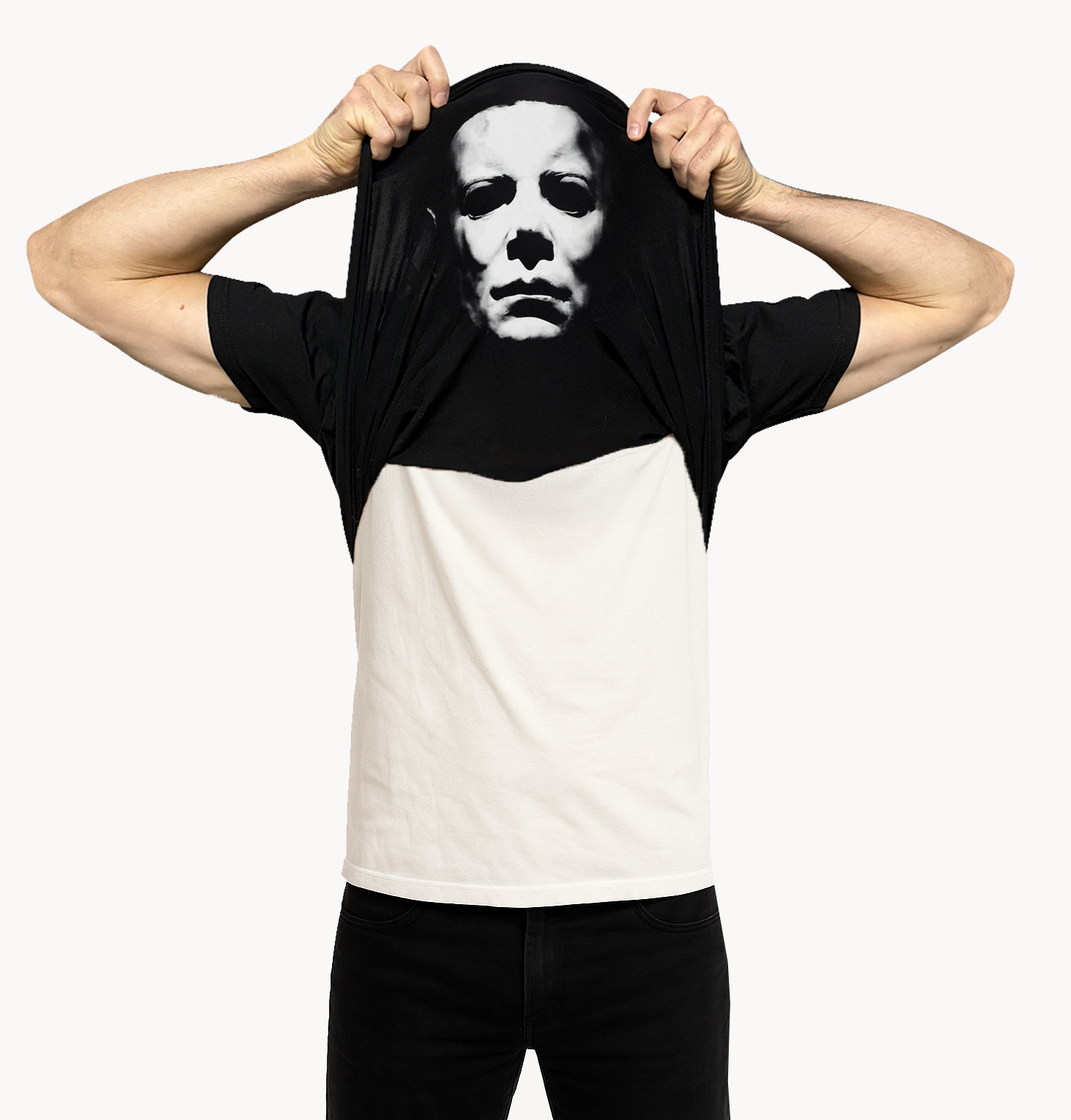 On the outside, clean typography and a straight-faced dare. On the inside, a full-coverage mask graphic is printed upside-down so it aligns when you flip the shirt over your head. It’s part prank, part performance—built for cons, parties, and late-night laughs.